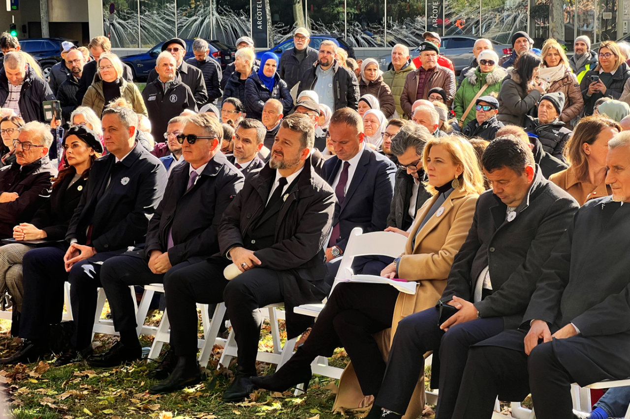 Na komemoraciji na Trgu Ujedinjenih nacija prisustvovao je veliki broj visokih zvaničnika, među njima ministrica vanjskih poslova Austrije Beate Meinl-Reisinger, njen bosanski kolega Elmedin Konaković, premijer Kantona Sarajevo Nihad Uk, te Željko Komšić, predsjedavajući Predsjedništva Bosne i Hercegovine. Oni su uputili poruke mira i sjećanja na ovaj historijski zločin. Austrija, kao prijateljska država i zemlja u kojoj danas živi veliki broj Bosanaca prognanih tokom rata, više puta je spomenuta s posebnim poštovanjem. Posebna gošća bila je predsjednica Udruženja Majke Srebrenice, koja je u genocidu izgubila 22 člana svoje porodice.